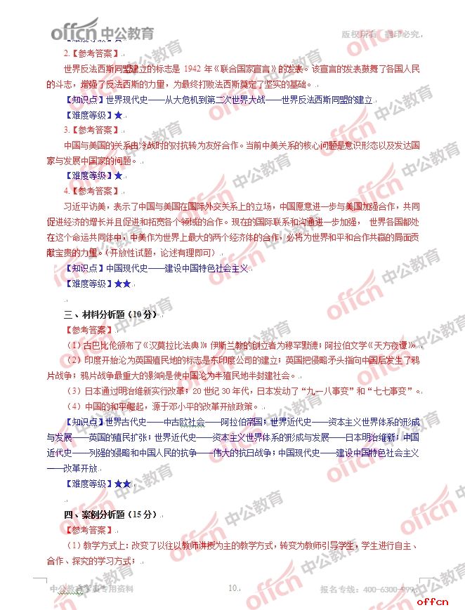 2017年江西教師招聘《初中歷史》試題答案及解析