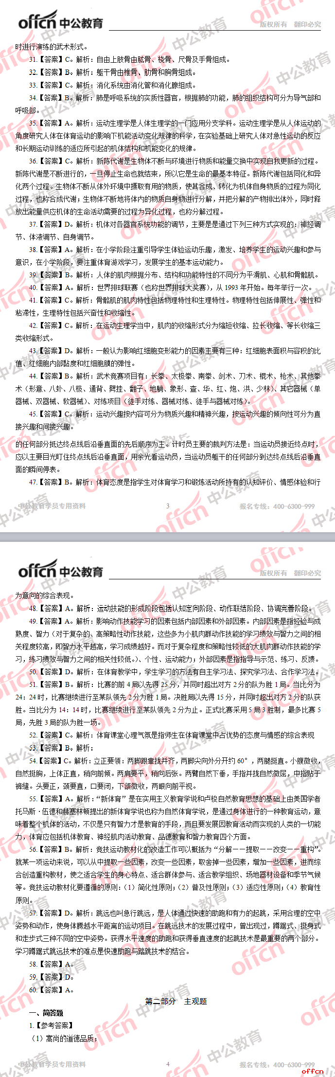 2017年江西教師招聘《小學(xué)體育》答案及解析