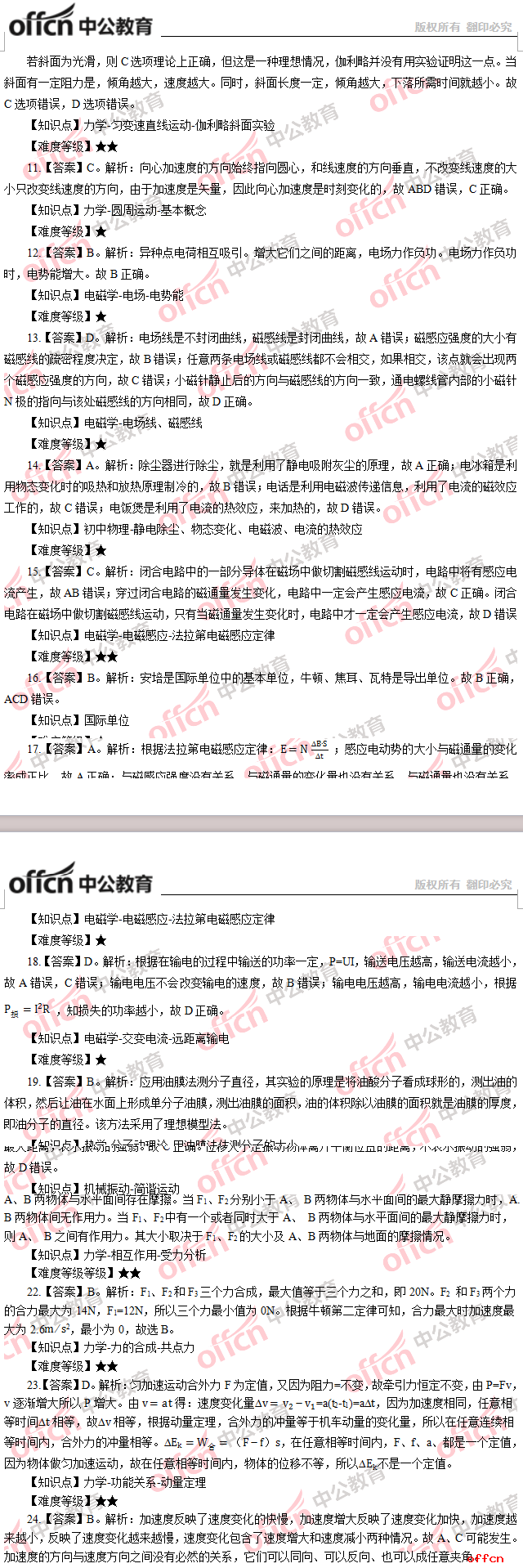 2017年江西教師招聘《高中物理》試題答案及解析