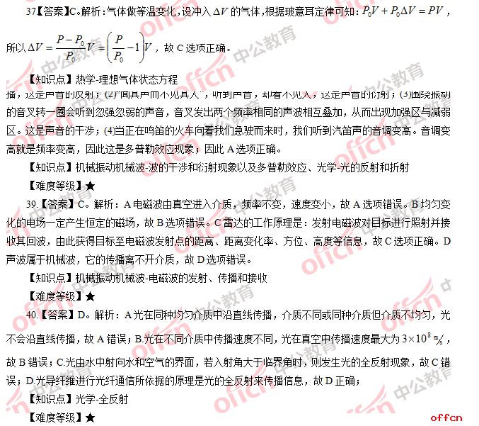 2017年江西教師招聘《高中物理》試題答案及解析