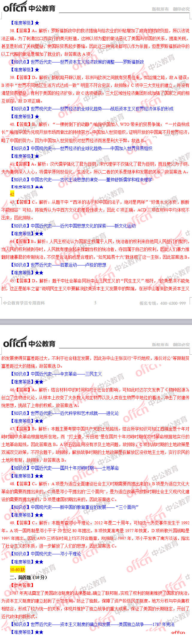 2017年江西教師招聘《高中歷史》試題答案及解析