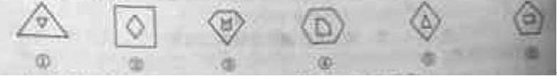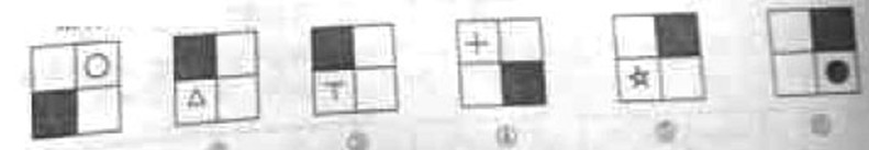 83.把下面的六個小圖形分為兩類,使每一類圖形都有各自的共同特征或規(guī)律,分類正確的一項是: