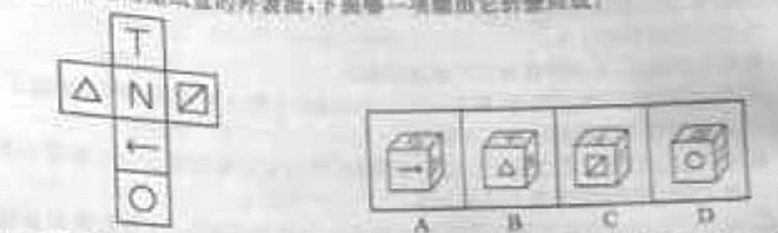 80. 左邊給定的是紙盒的外表面,下列哪一項能由它折疊而成?