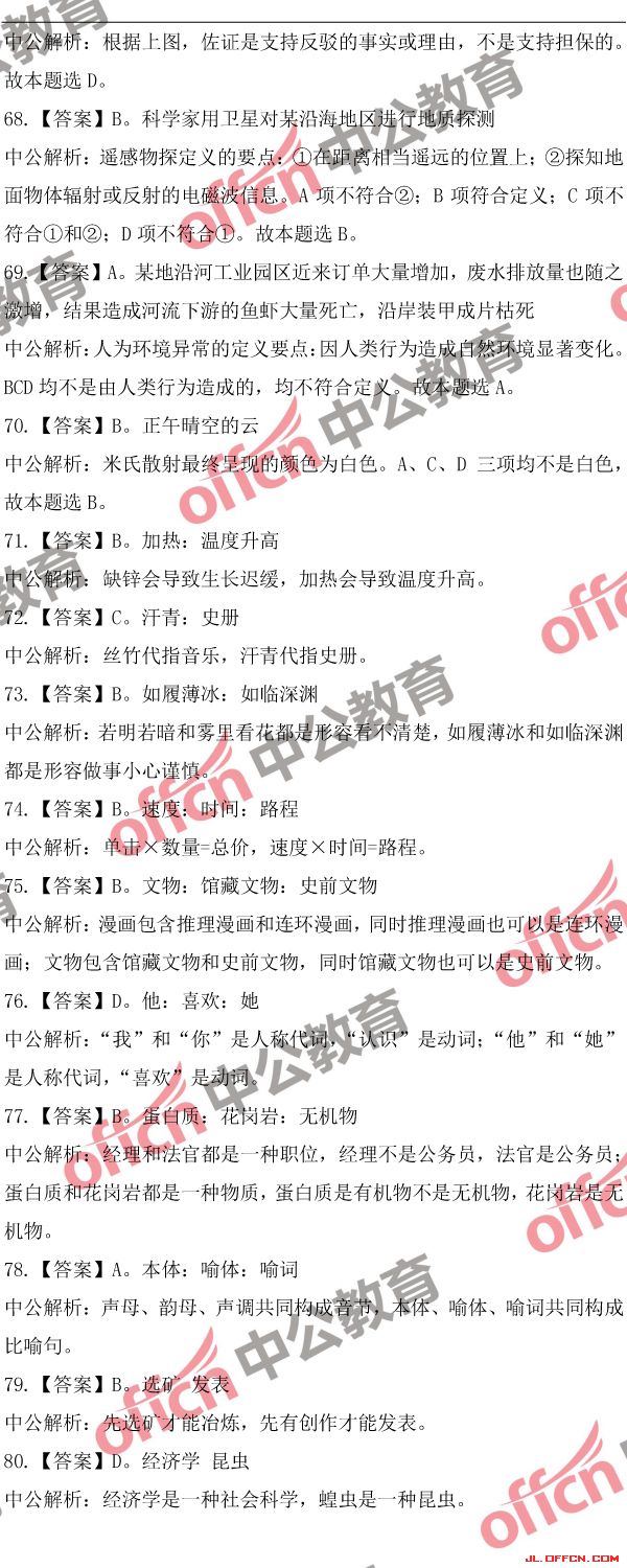 2018吉林公務(wù)員考試行測(cè)(甲)歷年參考答案及解析