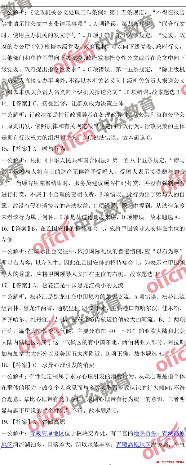 2018吉林公務(wù)員考試行測(cè)(甲)歷年參考答案及解析