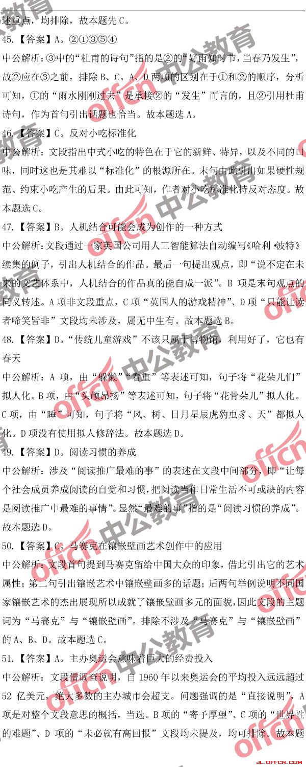 2018吉林公務(wù)員考試行測(甲)歷年參考答案及解析