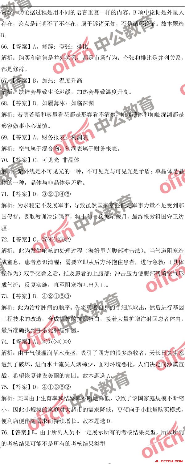 2018吉林公務(wù)員考試行測(乙)歷年參考答案及解析(10)[/page]