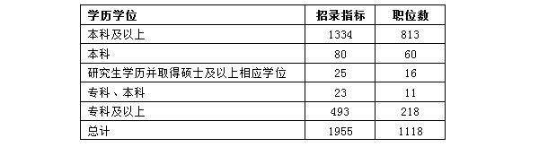 本次考試招錄對(duì)學(xué)歷進(jìn)行了具體細(xì)致的要求,對(duì)學(xué)歷層級(jí)、學(xué)位取得情況都設(shè)置了不同要求,1334人、813個(gè)職位的要求本科為起點(diǎn)的學(xué)歷,80人、60個(gè)職位僅要求本科學(xué)歷,還有23人、11個(gè)職位限定為??苹虮究茖W(xué)歷,這說明學(xué)歷設(shè)置具有針對(duì)性,此次招錄對(duì)高學(xué)歷層次的需求比例并不大,僅有25人、16個(gè)職位要求起點(diǎn)學(xué)歷為碩士研究生。整體上看,各個(gè)學(xué)歷層次的考生都有機(jī)會(huì)參加此次考試,考生們要抓住機(jī)遇,為了成“公”而努力。