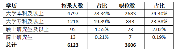 2016河南公務(wù)員考試有74.4%的職位要求考生為本科及以上學(xué)歷,共招錄人數(shù)為4797人,占總招錄人數(shù)的78.34%。可見,本科及以上學(xué)歷仍然是河南公務(wù)員考試招錄的主體。此外,要求為碩、博研究生學(xué)歷的職位個數(shù)和招考人數(shù)均有所降低。