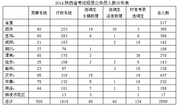 陜西省2014年面向社會公開2559名(其中,選調(diào)生224名,參照公務(wù)員法管理單位工作人員287名)。