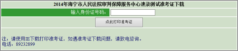 2014浙江嘉興海寧市人民法院審判服務(wù)中心速錄測(cè)試準(zhǔn)考證下載