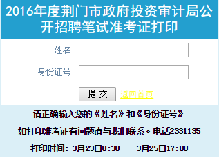 2016湖北荊門市政府投資審計局招聘筆試準(zhǔn)考證打印入口