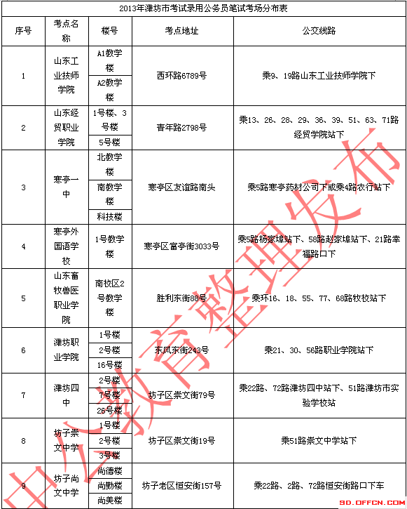 2014年濰坊公務(wù)員考試考場考點指南