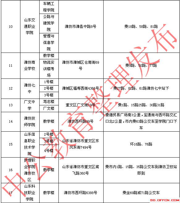 2015年山東【濰坊】公務(wù)員考試考場考點指南