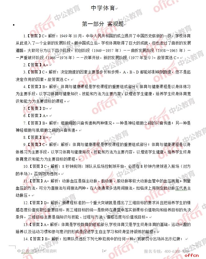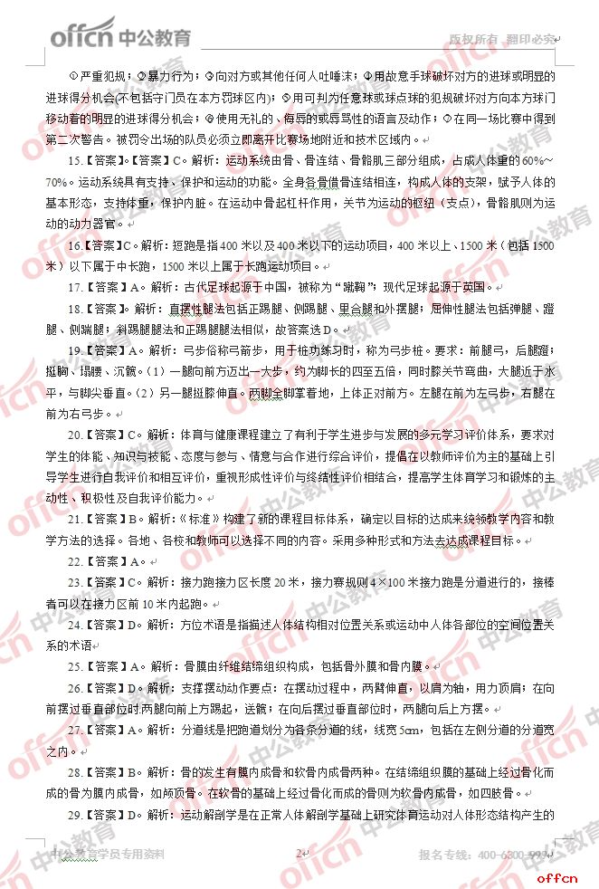 2017年江西教師招聘《中學(xué)體育》試題答案及解析