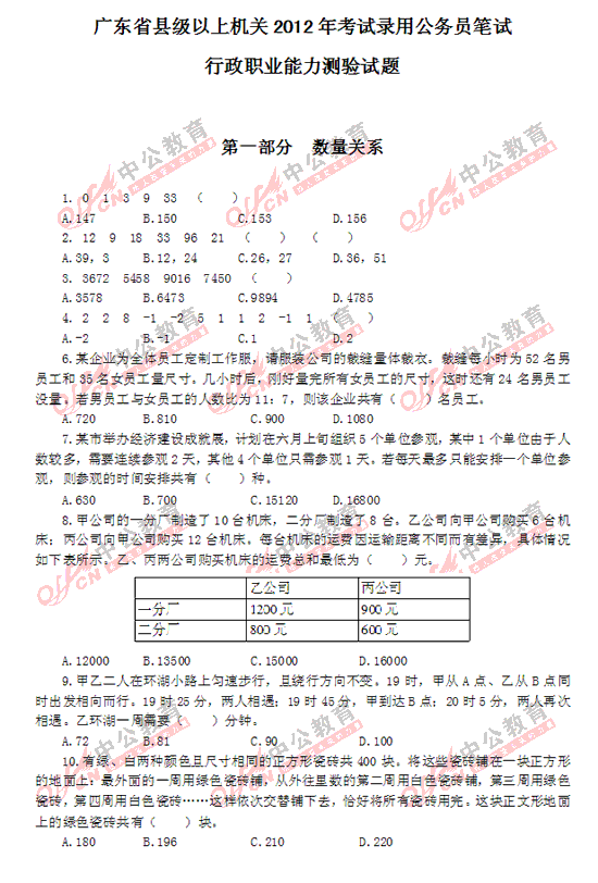 2012年廣東縣以上公務(wù)員考試行測(cè)